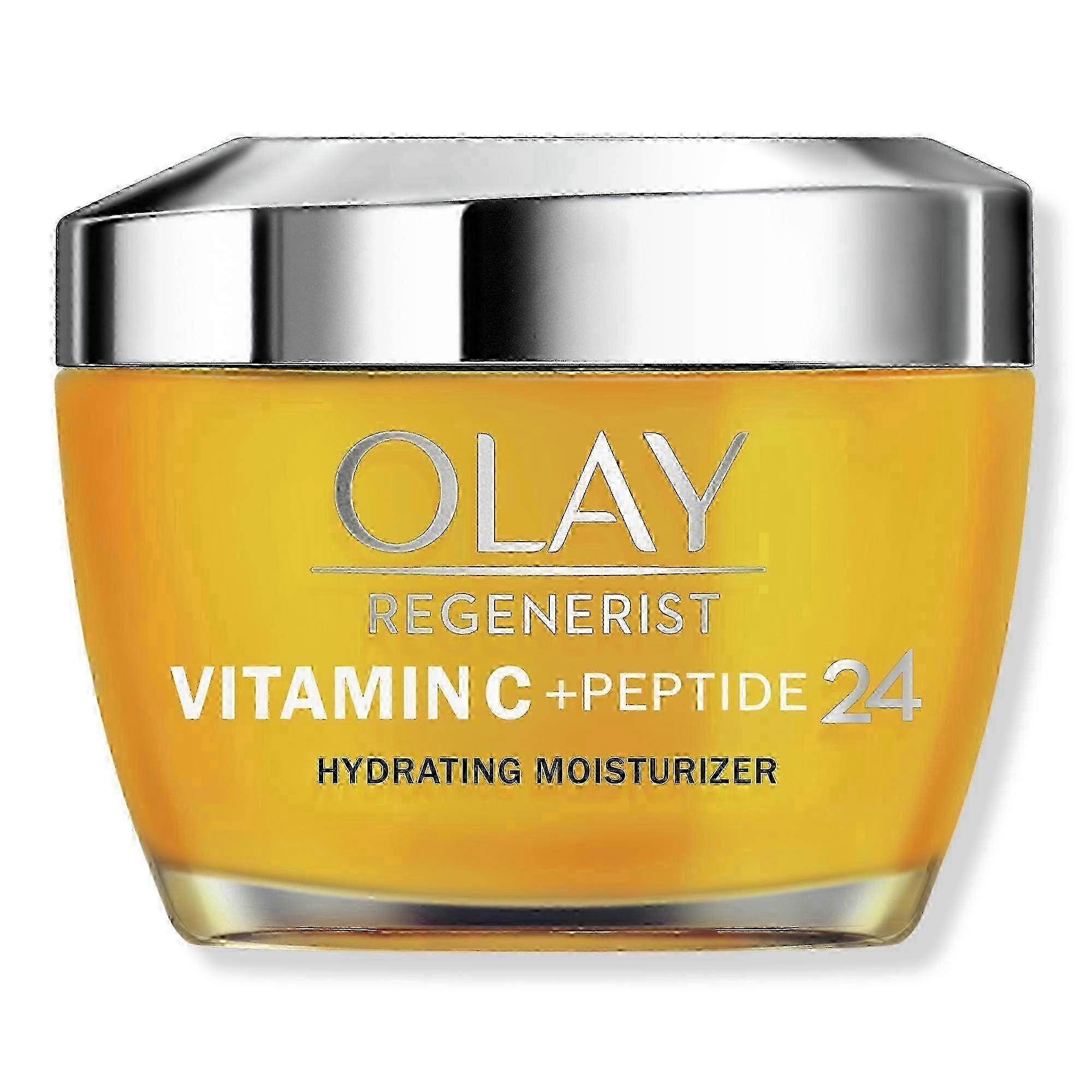 Dull skin? Brighten up, babe Olay Regenerist Vitamin C + Peptide 24 Face Cream gives 2X Brighter Skin* in just 28 days. And they didn't stop there - it also hydrates better than the $400 cream What's not to love about glowing and radiant skin? Benefits Light & Refreshing Citrus-scented, silky, lightweight cream that melts into skin, does not clog pores, and leaves no greasy residueRefreshed Glow: You will instantly feel refreshing hydration. In 1 week, you will have skin that looks less tired, with a glow. 1 month in, your skin will look brighter, more even and smoother Features Fresh Squeezed Ingredients: This formula, crafted with Vitamin C, Vitamin B3 and Lactic Acid, visibly brightens and hydrates skinRadiance Day & Night: Smooth evenly over cleansed face and neck both morning and night. Use SPF in the daytime to protect your radiant skin Formulated Without This Dermatologist tested moisturizer is made without parabens, phthalates, synthetic dyes or mineral oils Suggested Use: Smooth evenly over cleansed face and neck, morning and night. Use with SPF in the daytime. Precautions: Avoid contact with eyes. If contact occurs, rinse eyes with water. If skin irritation develops, discontinue use. Sunburn alert: this product contains an alpha hydroxy acid (aha) that may increase your skin's sensitivity to the sun and particularly the possibility of sunburn. Use a sunscreen and limit sun exposure while using this product and for a week afterwards. Expiration Date: We have fresh stock each week with exceptional expiration dates prior to APRIL 2024. Products will expire no later than six months to 1 year after receipt. Product Packaging: Please note that some manufacturer may often change their packaging. This product may arrive different from what is pictured. We will always ship the most up-to-date packaging to our customers. Please contact us if you have any questions about this product or would like to request an older version of this product. Healthcare Disclaimer: Content on this site is for reference purposes only. OTC Shoppe Express does not represent or warrant that the nutrition, ingredient, allergen and other product information on our Web or Mobile sites are accurate or complete, since this information comes from the product manufacturers. On occasion, manufacturers may improve or change their product formulas and update their labels. We recommend that you do not rely solely on the information presented on our Web or Mobile sites and that you review the product's label or contact the manufacturer directly if you have specific product concerns or questions. If you have specific healthcare concerns or questions about the products displayed, please contact your licensed healthcare professional for advice or answers. UPC: 000002586031 Weight: 0.63 lbs