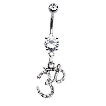 Om symbol dangle-style belly ring - 316l steel - 14ga - 7/16 length - 23 gems