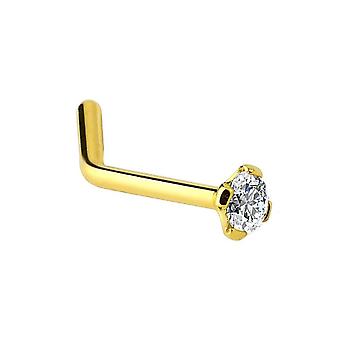 Kiinteä 14k kultainen l-muotoinen nenärengas cz helmi BodyJewelryOnine
