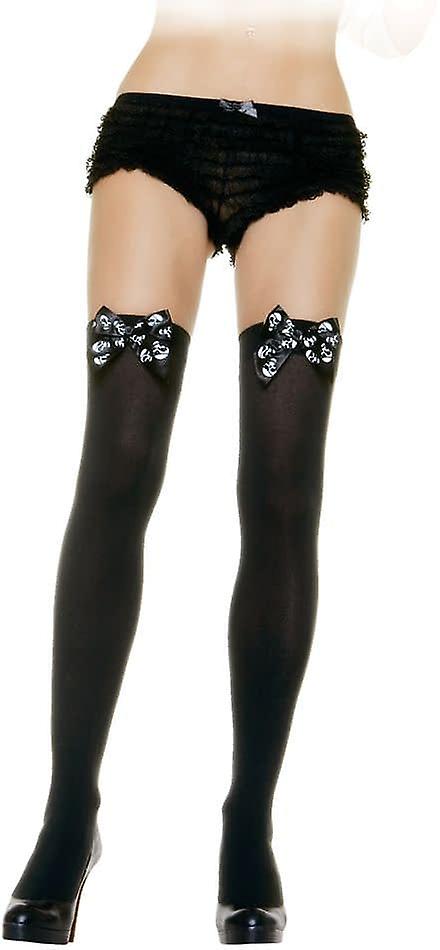 Opaque Thigh Hi W Skull Print - Costume Accessory