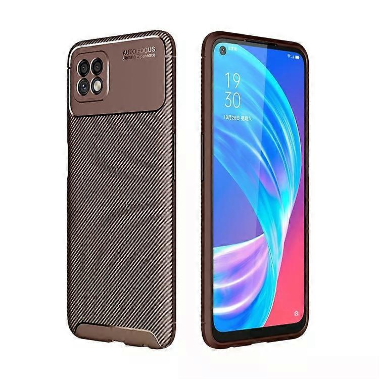 OPPO Reno4 Lite TPU Case-Shockproof Carbon Fiber Texture,Brown Brown