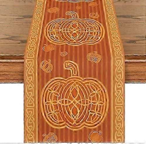 Orange Pumpkin Pattern Fall Table Runner, Stripes Seasonal Autumn Kitchen Dining Table Decoration for Home Party Decor