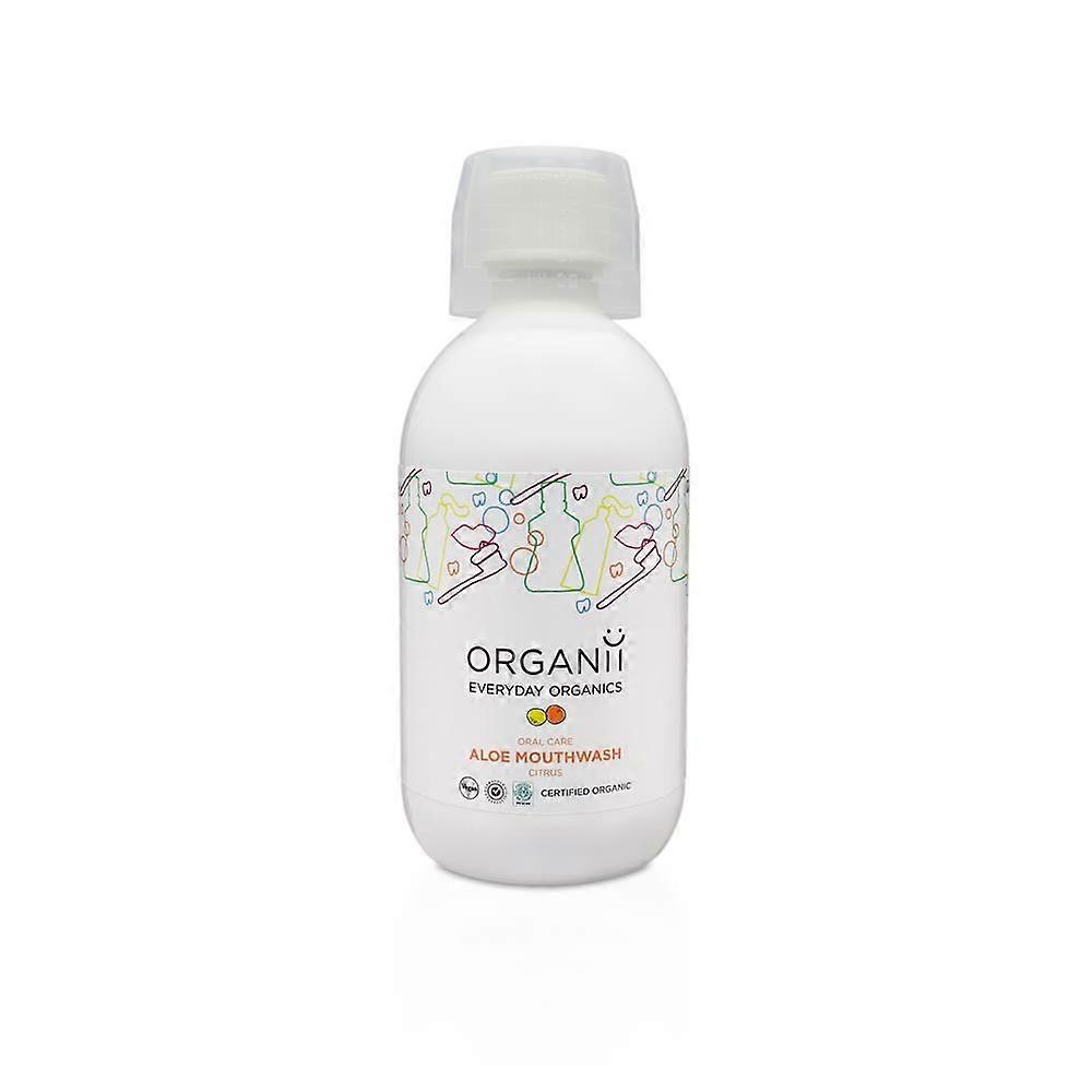 Experience the refreshing and natural oral care of Organii Aloe Vera & Citrus Mouthwash, a 500ml solution expertly crafted to support your dental health. This mouthwash combines the soothing and healing properties of aloe vera with the invigorating essence of citrus oils to promote a cleaner, healthier mouth.Enriched with aloe vera, a renowned natural antifungal and antibacterial extract, this mouthwash effectively reduces plaque buildup while boosting collagen production to enhance your mouth's natural healing abilities. Regular use helps protect teeth and gums from plaque, tartar, and unpleasant breath, ensuring lasting freshness throughout the day.The unique citrus blend includes essential oils of grapefruit, orange, and lemon, each contributing powerful oral health benefits. Grapefruit oil offers antimicrobial effects that target harmful bacteria, supporting a balanced oral environment. Orange oil helps combat bacterial growth, providing added protection against gum infections and tooth decay. Lemon oil, known for its antibacterial and antifungal properties, serves as a natural remedy for conditions like oral thrush and bad breath. Additionally, lemon oil assists in whitening teeth naturally while preventing decay.This alcohol-free mouthwash is suitable for daily use and ideal for those seeking a gentle yet effective oral care product without harsh chemicals. Simply rinse your mouth with the recommended amount after brushing to enjoy a revitalizing cleanse and long-lasting protection. Reduces plaque and tartar buildup Fights bad breath and promotes fresh breath Supports gum health and accelerates healing Contains natural antibacterial and antifungal ingredients Helps whiten teeth naturally Free from harsh chemicals and alcoholChoose Organii Aloe Vera & Citrus Mouthwash for a natural, effective approach to oral hygiene that leaves your mouth feeling clean, refreshed, and healthy every day.