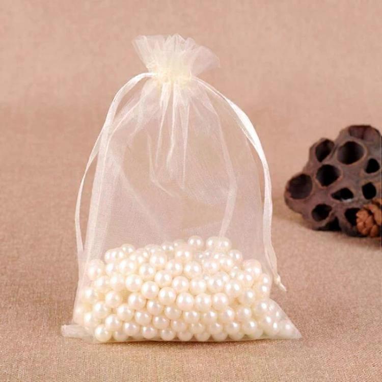 Organza Gift Bags-100 PCS Drawable Jewelry Pouches 16x22cm Creamy White Creamy White