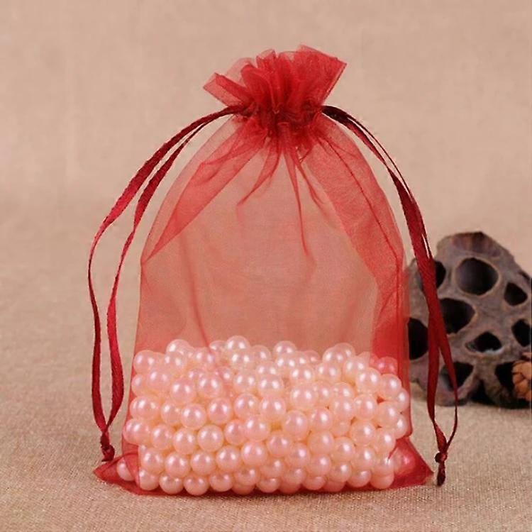 Organza Gift Bags-100 PCS Drawable Jewelry Pouches 16x22cm Wine Red Wine Red