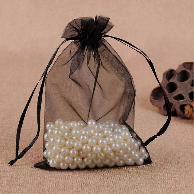 Organza Gift Bags-100 PCS Drawable Pouches for Jewelry & Parties,16x22cm,Black Black