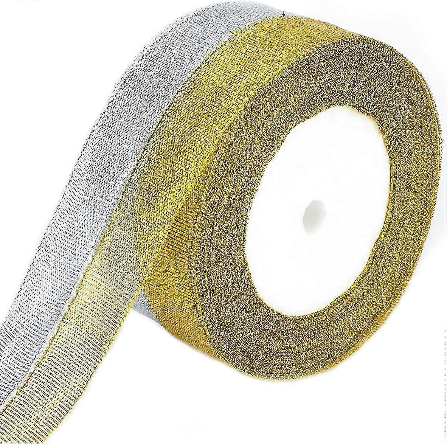 Material of Sparkly Christmas RibbonThese christmas gift wrap ribbons are made of organza and look very pretty. They are flexible, tear free & dont tangle or wrinkle easily.Size of the Glitter Wrapping RibbonYou'll get 2 rolls of 20mm wide organza gift ribbons, each is 22m in length, so total length of 44m.Looks Good on Wrapping up PresentsYou can incorporate the simplicity brown paper with really beautiful sparkly gold and silver ribbon. It will give a simple yet elegant look. It will add some nice sparkle when you use this gift ribbon for wrapping presents.Nice Ribbon for Handmade ProjectThese glitter christmas wrapping ribbon are good to use in homemade card making or present wrapping or for hanging up home ornaments. Ideal for christmas presents wrapping, wedding decorations, bouquet or cake.Versatile Christmas RibbonsThis set of silver and gold ribbons is perfect for making different decorations for your Christmas tree and a bow for a wreath! the silvery one for long garlands, and the golden one became bows and such. and also can be used to wrap Christmas presents.