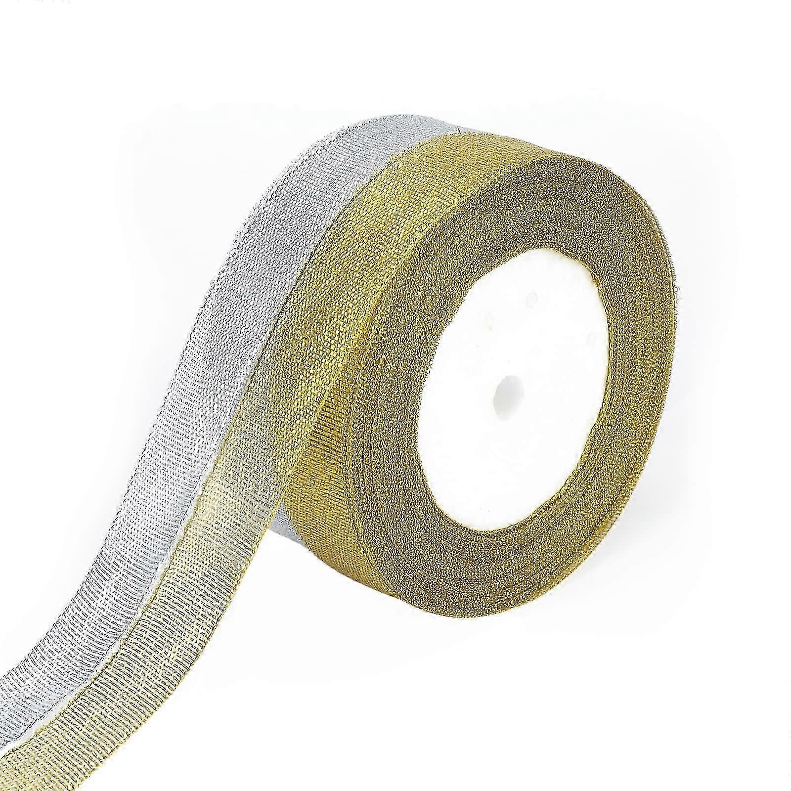 Organza Gift Wrap Ribbons - 25mm Decorative Christmas Ribbons Gold and Silver Ribbons 2 Rolls x 25M