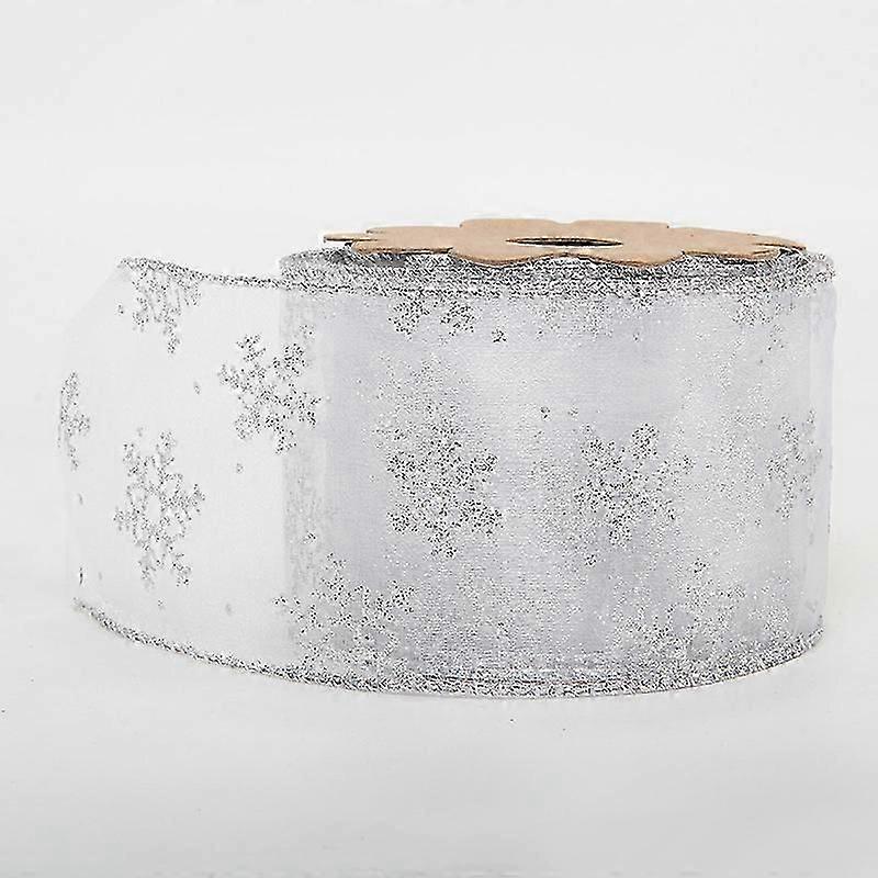 Organza Ribbon Christmas Ribbon Glitter Snowflake Ribbons Ornament 5m 63mm Band Sparkly Glitter Ribbon Craft Tulle Ribbon for Christmas Tree Christmas