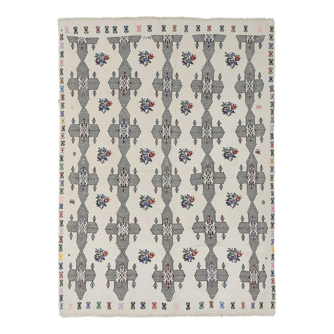 Oriental Floral Embroidery Jajim Kilim Rug - Handwoven Saloon Carpet