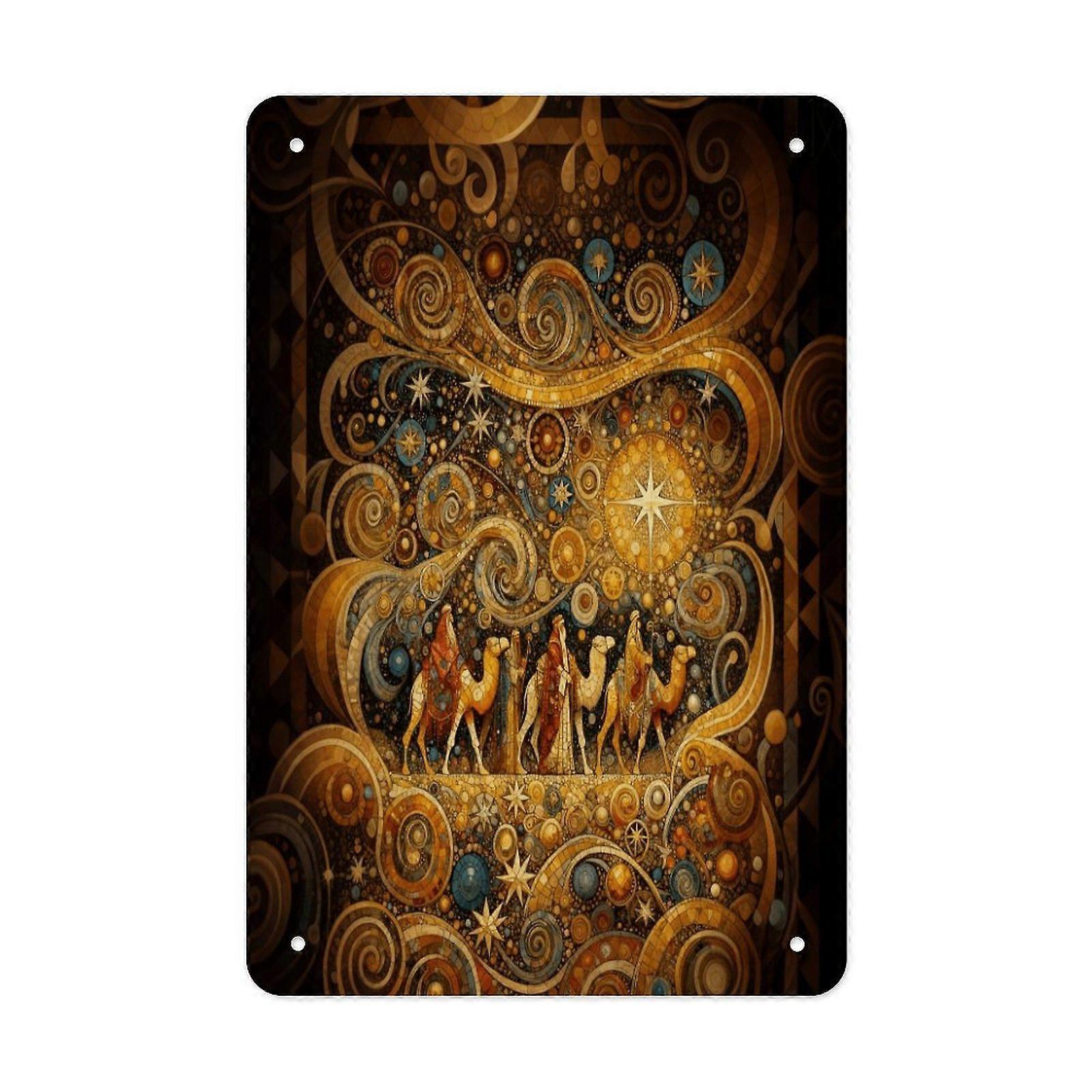 Oriental Starry Desert Camel Metal Tin Sign Boho Artistic Wall Decor