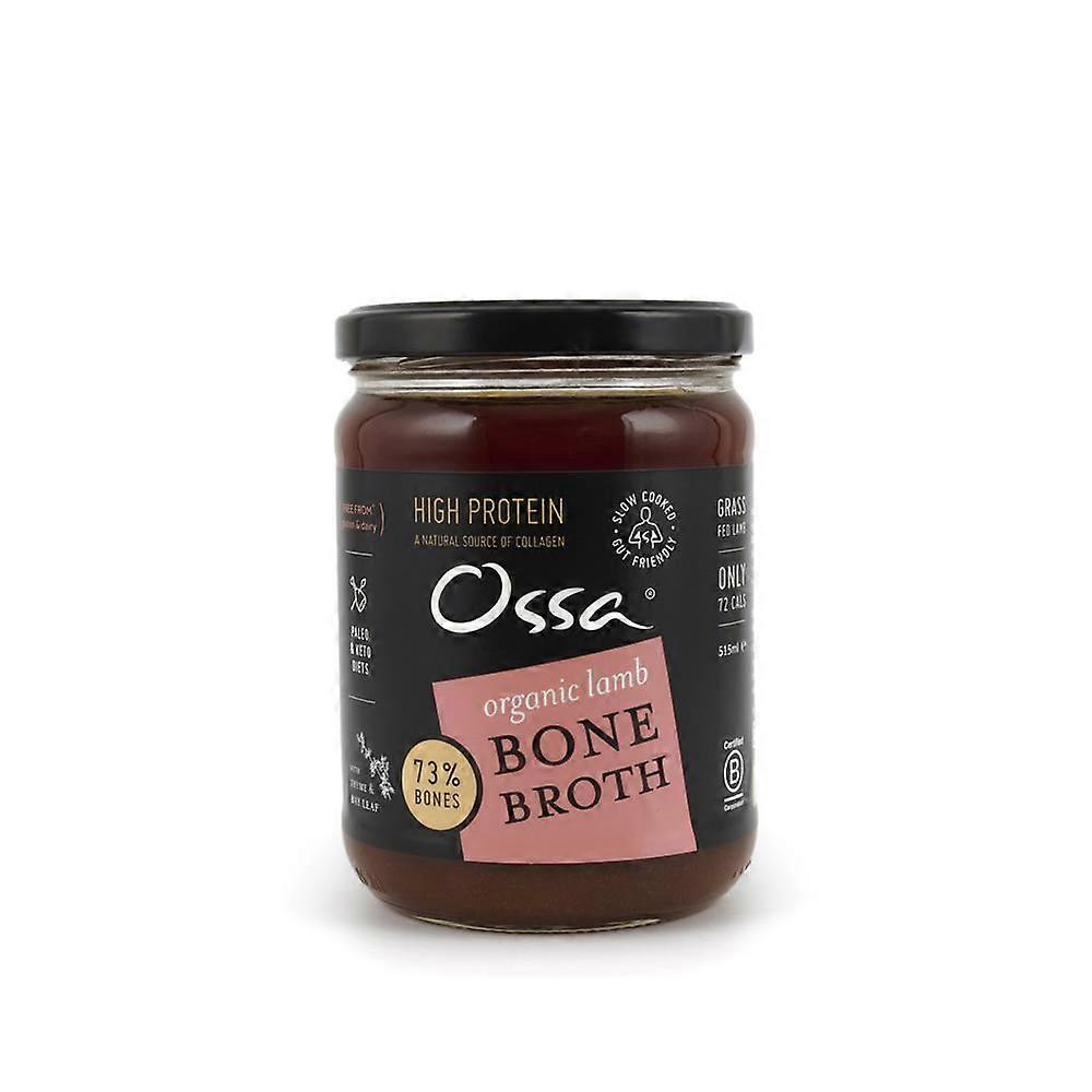 Experience the rich, nourishing flavors of Ossa Organic Lamb Bone Broth, carefully slow-cooked to perfection and now conveniently available as an ambient pantry staple in a large 515ml jar. Crafted using 73% organic lamb bones* and a blend of organic vegetables, this broth delivers a natural depth of taste and a wealth of nutrients that support overall wellness.Our lamb bone broth is simmered slowly to extract collagen, minerals, and amino acids, making it an excellent source of gut-friendly nutrients and a comforting addition to your daily diet. With no artificial additives or preservatives, it offers a pure and wholesome option for those seeking clean, organic nourishment.This ambient broth is ideal for a variety of culinary uses. Enjoy it as a warm, revitalizing drink on its own, or incorporate it into soups, stews, risottos, and sauces to enhance flavor and nutrition. Its convenient shelf-stable packaging ensures you always have a healthy, ready-to-use broth on hand without the need for refrigeration until opened.Whether you're looking to support joint health, improve digestion, or simply add a rich, savory base to your cooking, Ossa Organic Lamb Bone Broth is a versatile and delicious choice. Elevate your meals with the natural goodness of organic ingredients and slow-cooked tradition.*Contains 0.73kg bones per 1 liter of broth, which translates to approximately 35% bones per jar.