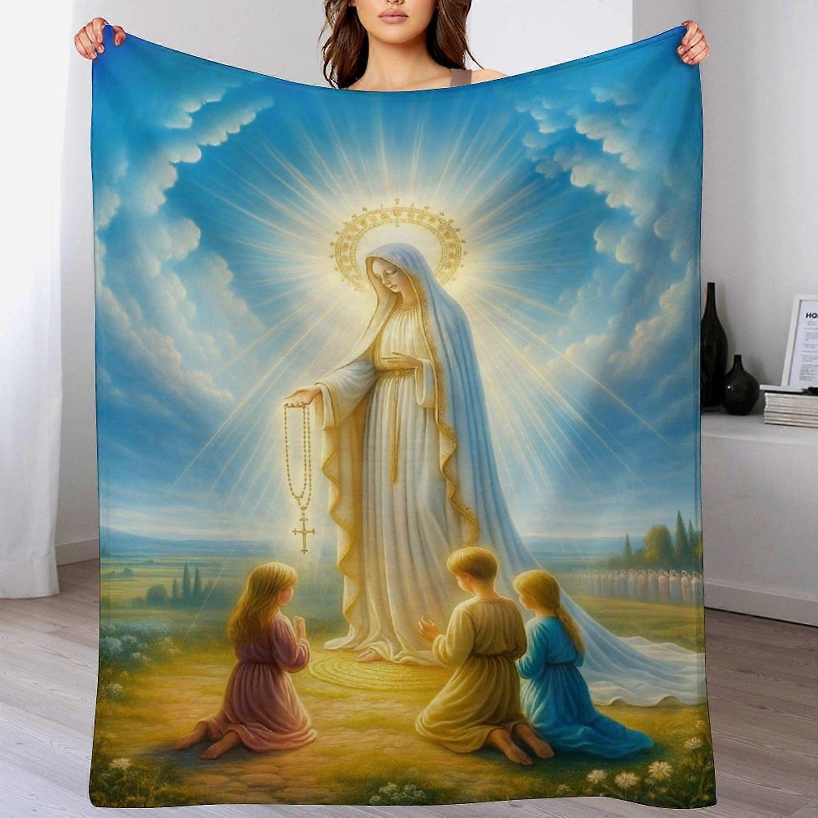 Our Lady & Children Print Flannel Blanket - Cozy Warm Throw | Religious Gift for Catholic Families