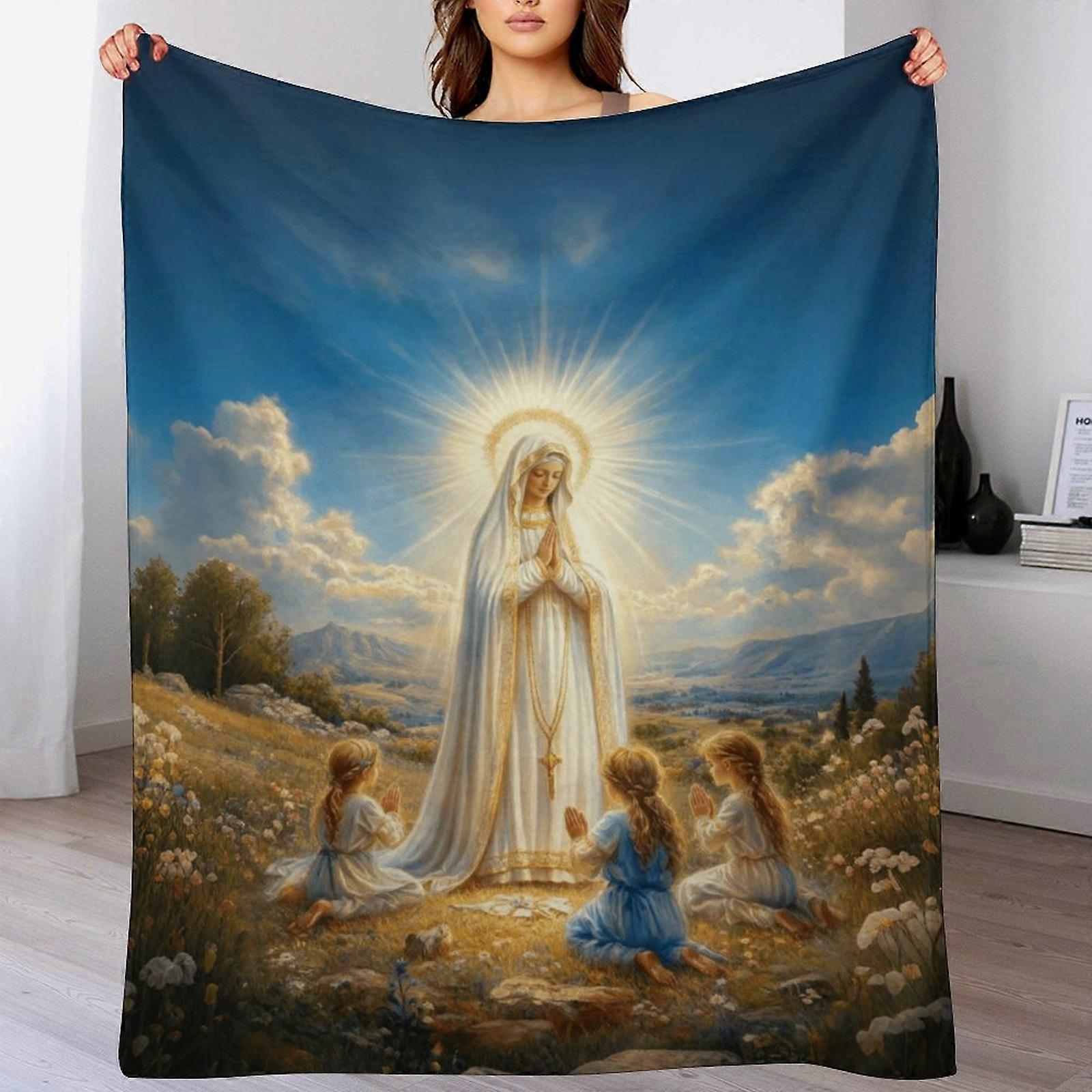 Our Lady & Children Print Flannel Blanket - Cozy Warm Throw | Religious Gift for Catholic Families