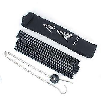 RM19815329840879170 Name: tripod Weight: 480g Size: 33cm*7cm*3.8cm, 54cm*41cm*80cm Box Rule: oxford bag separate packing Material: Hard Alumina产地:中国制造 Outdoor practical big support for BBQ, suitable for team and family camping, picnic, campfire. 采用超轻硬质氧化铝,质量比铁质材料减轻约一半. 免拆装伸缩设计,挂链可调节烧烤高度. It can be used in conjunction with travel series products.