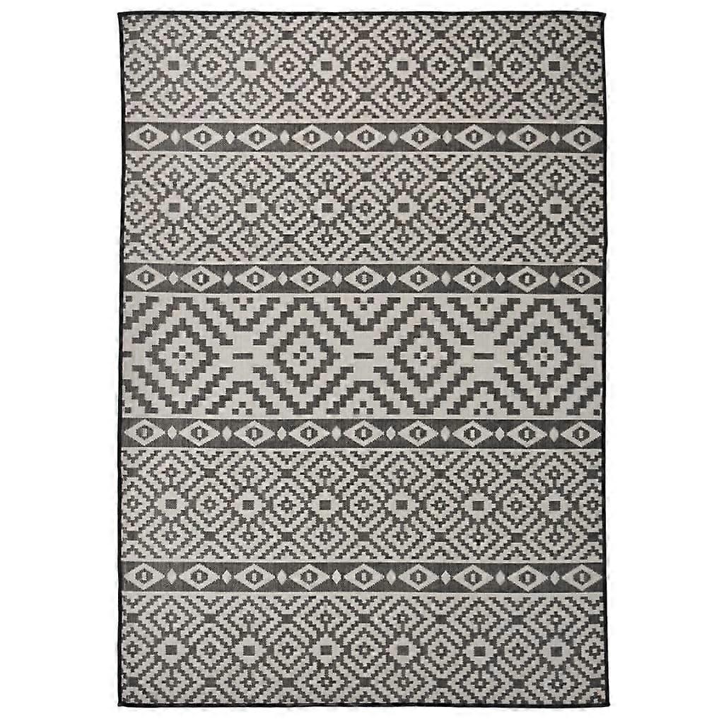 Outdoor-Teppich Flachgewebe 140x200 cm Schwarz Gestreift