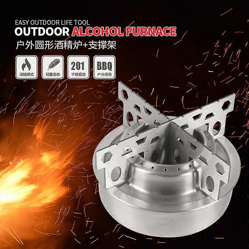 Outdoor Stainless Steel Alcohol Stove Camp Portable Liquid Solid Cooker Round Camping Stove Equipment Camp Hiking Ultralight