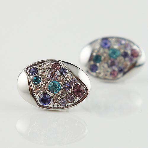 Oval Egg Shape Silver Stud Colourful Purple Blue Stone Crystals Earrings
