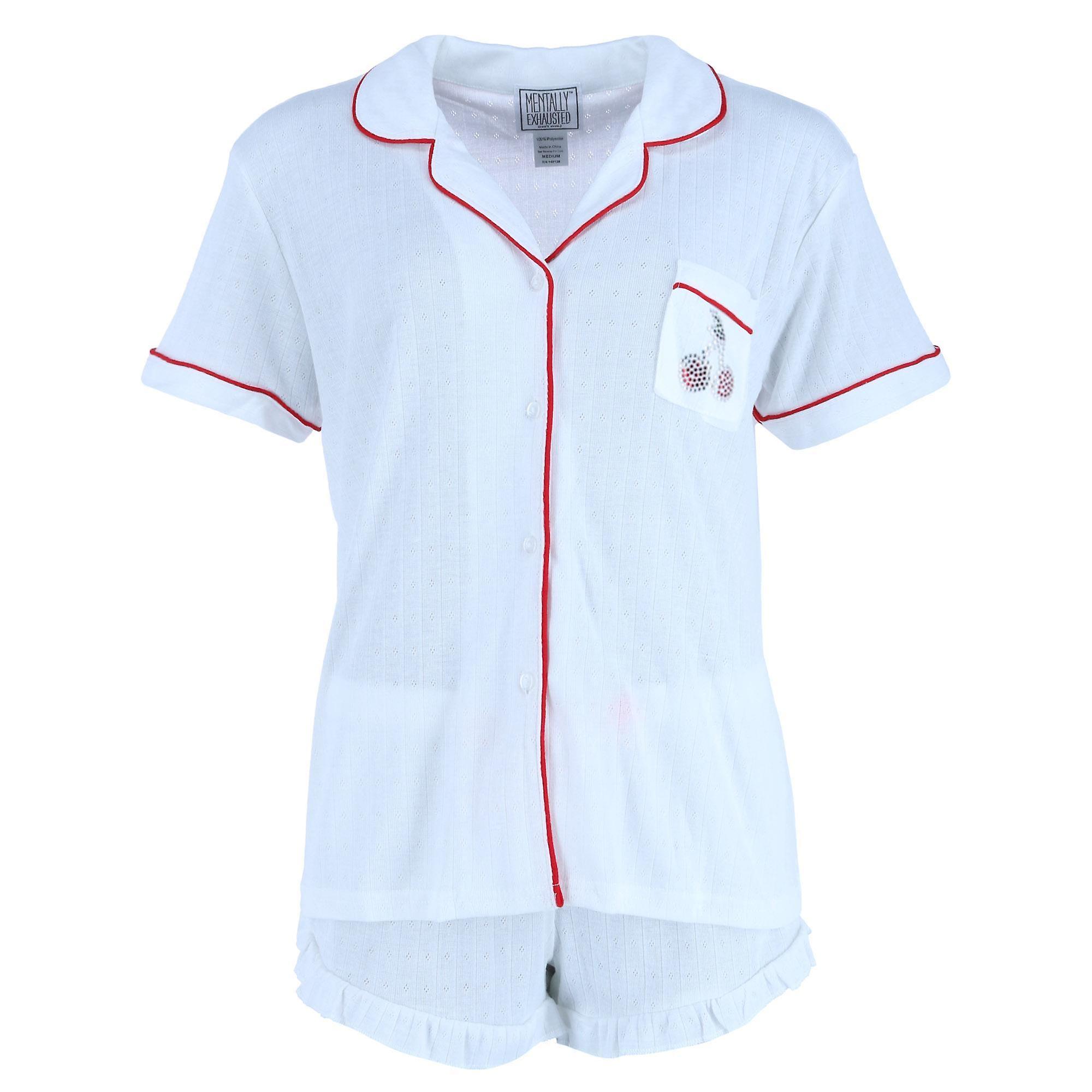Overslept Shorts Pointelle Cherries Notch Pajama Set (Women)
