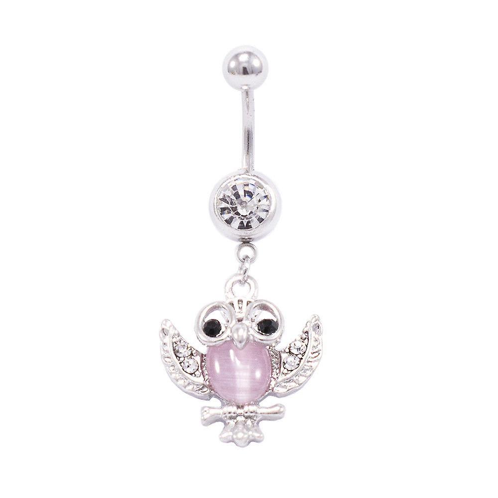 Owl design 14g 316l dangle belly button ring with pink opal stone