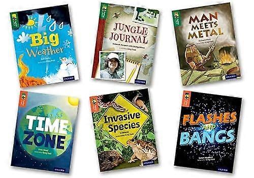 This pack contains one of each of the following titles: Big Weather Jungle Journal Man Meets Metal Time Zone Invasive Species Flashes and Bangs. TreeTops inFact is an exciting non-fiction series for children aged 7-11.