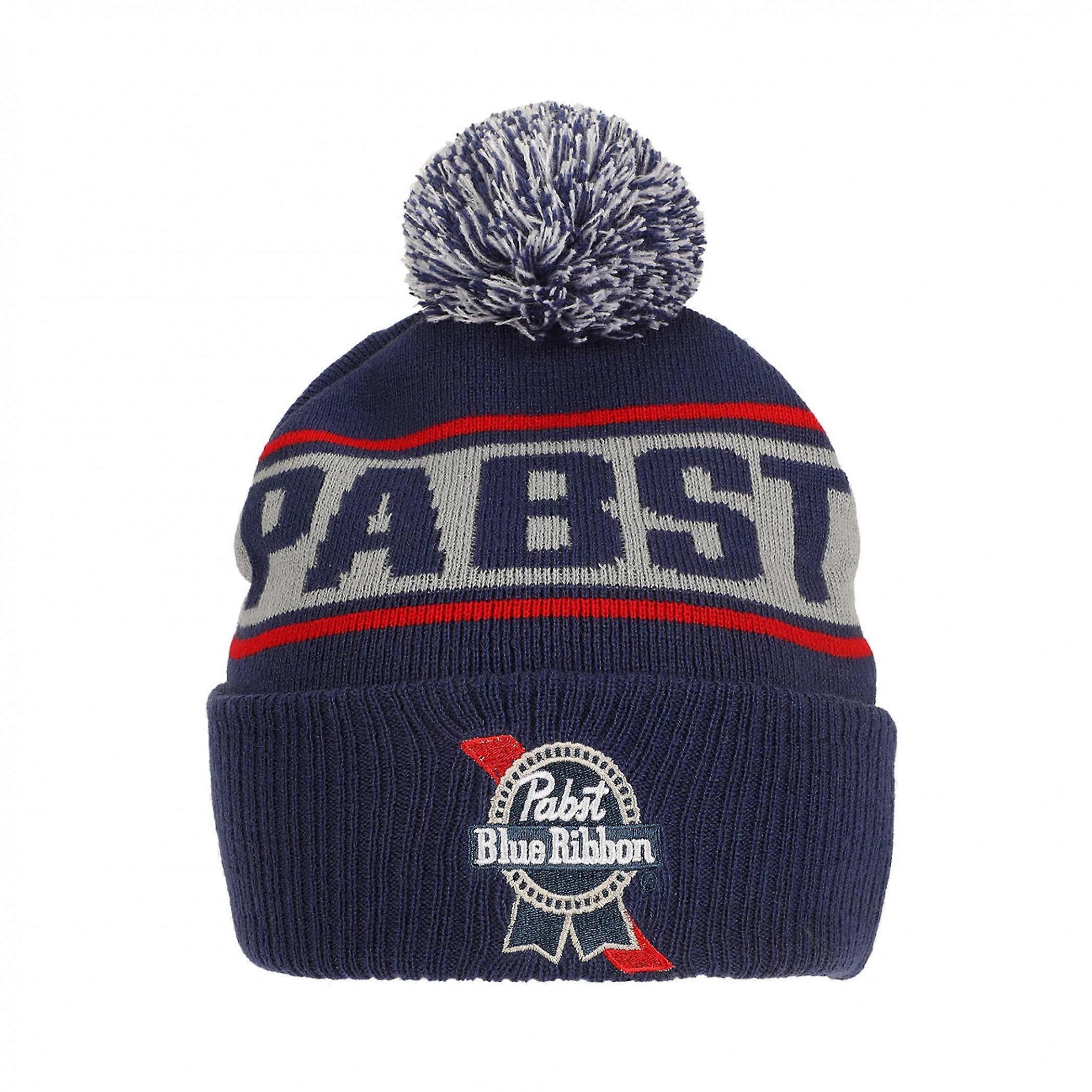 Pabst Blue Ribbon Jacquard and Embroidered Logo Knit Beanie with Pom