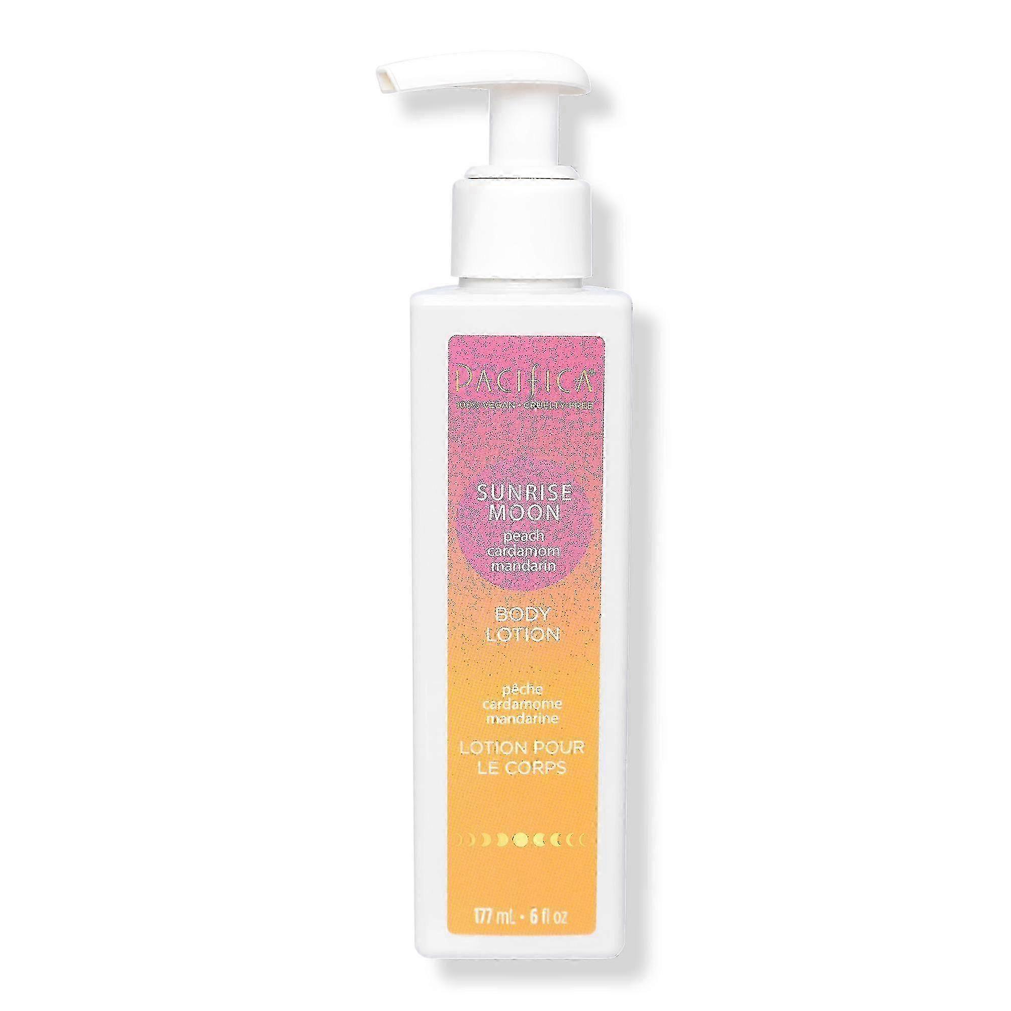 Pacifica's lightweight, super hydrating Sunrise Moon Body Lotion combines an uplifting, grounding scent blend of peach, cardamom and mandarin with nourishing sunflower, avocado oils and shea butter to support your dreamiest skin.