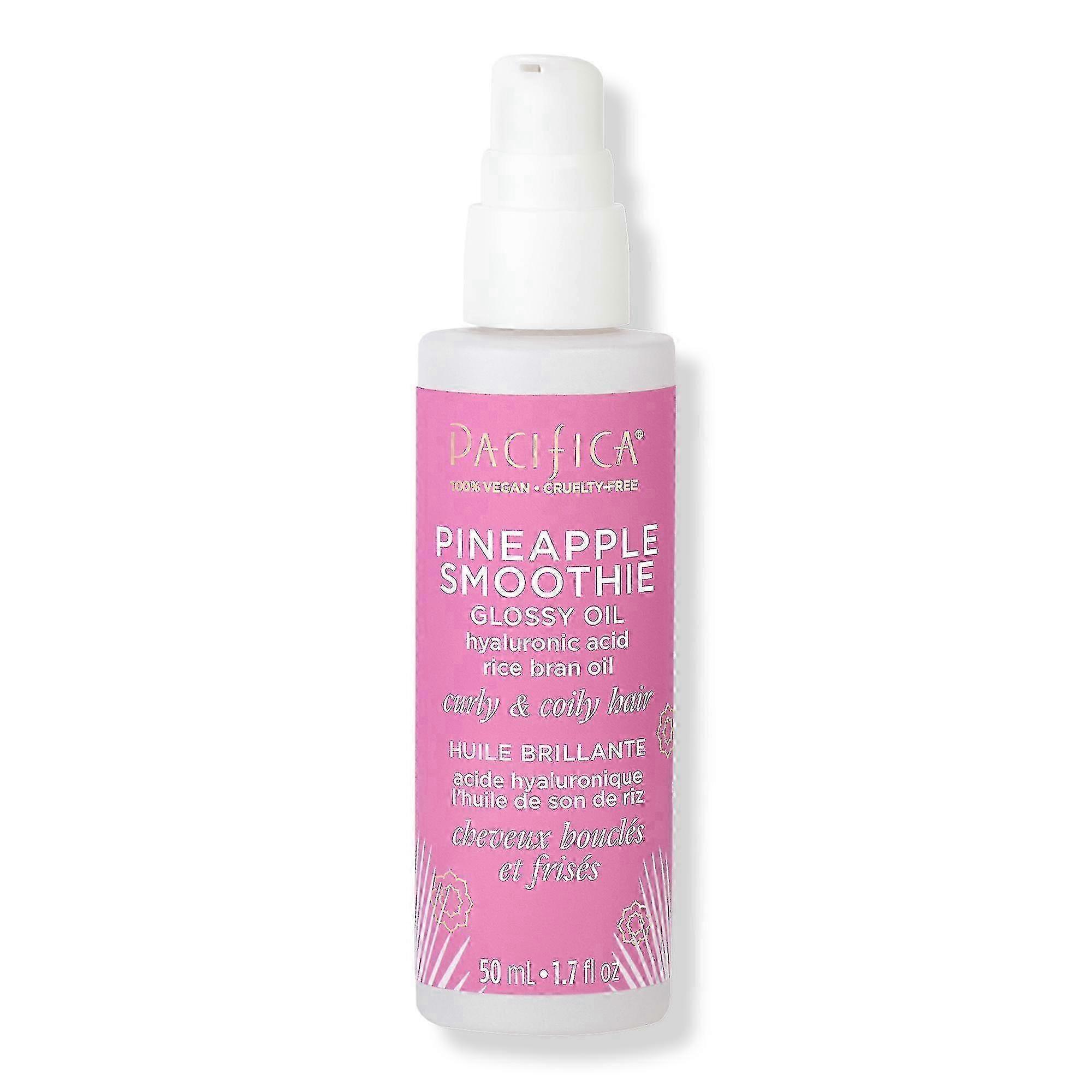 Smooth and soften frizz and fly aways while you hydrate your curls with Pacifica's Pineapple Curls Smoothie Glossy Curl Oil, infused with hyaluronic acid.