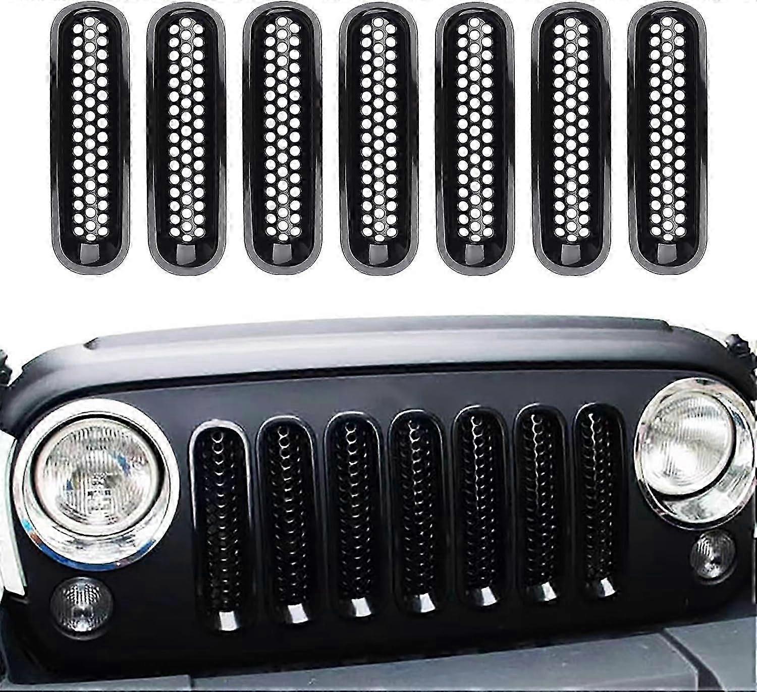 Pack-7 Car Front Grill Mesh, Clip-in Front Mesh Grille Cover Guard, Decorative Grill Inserts for 2007-2017 Jeep Wrangler JK (Black)