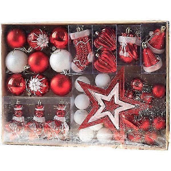 Pack of 24 Christmas baubles for indoor and outdoor decoration, 44 pieces Christmas decorations, red.