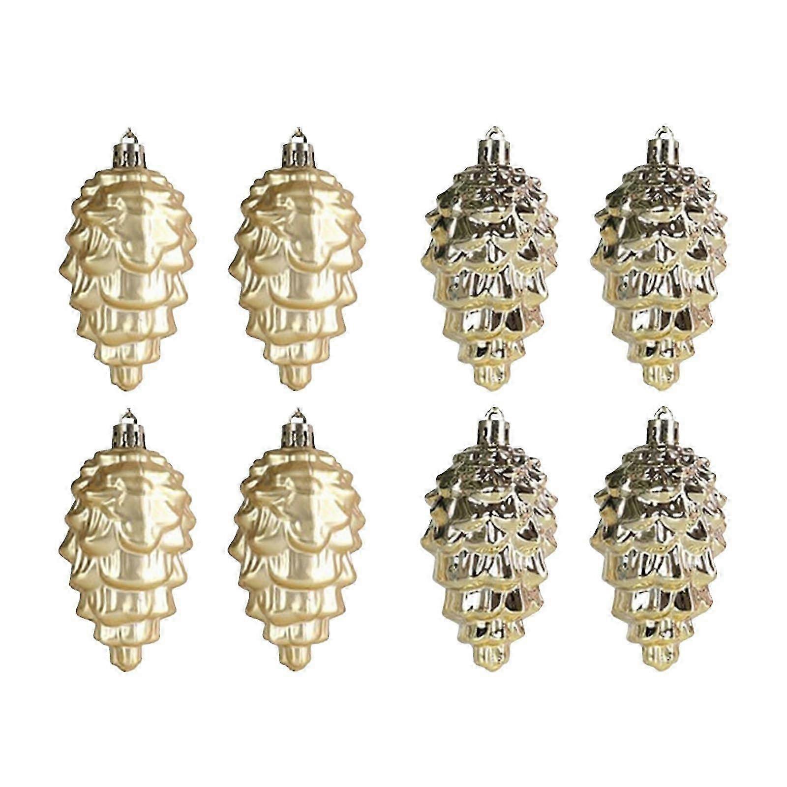 Pack of 8 Plastic Christmas Baubles, 9 cm Set, Tree Cones, Gold