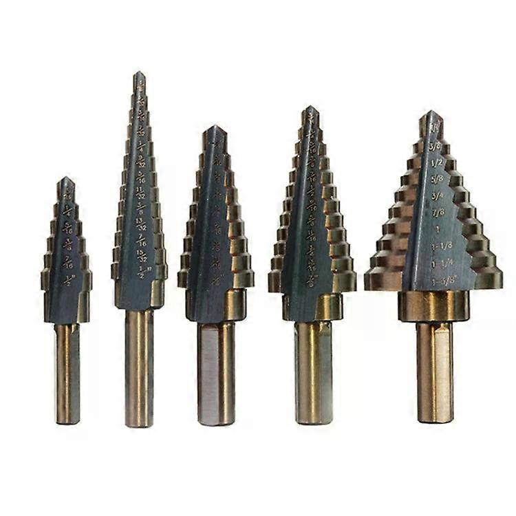 Pagoda Drill Bit Set-High Speed Steel,Triangle Handle,5-in-1