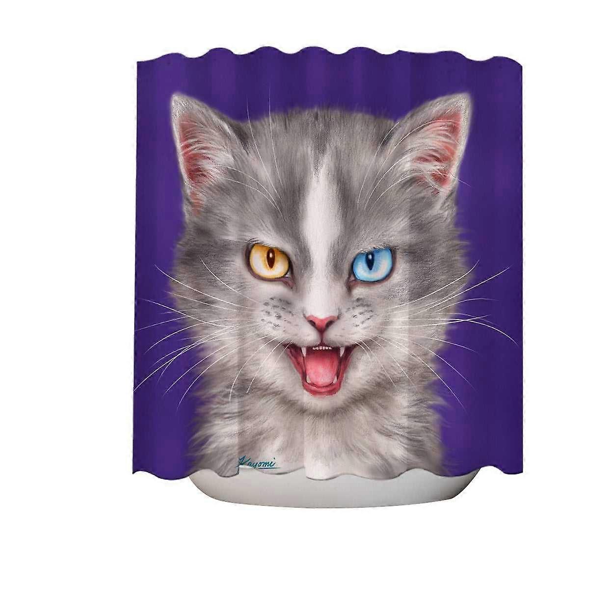 Painted Cats Heterochromia Eyes Grey Cat Shower Curtain