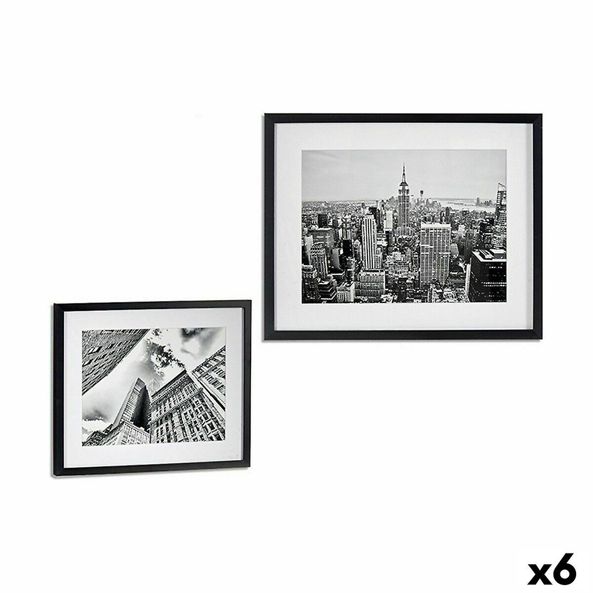 Painting Gift Decor Black Wood Glass Building 43 x 3 x 53 cm (6 Units)