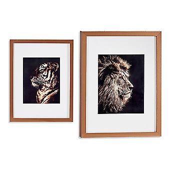 Painting Gift Decor Bronze Glass Particleboard Tiger Lion 33 x 3 x 43 cm 33 x 43 x 3 cm