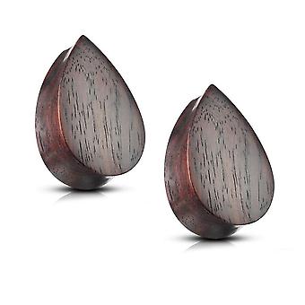 Pair of ear plugs made of organic sono wood tear drop shape double flared