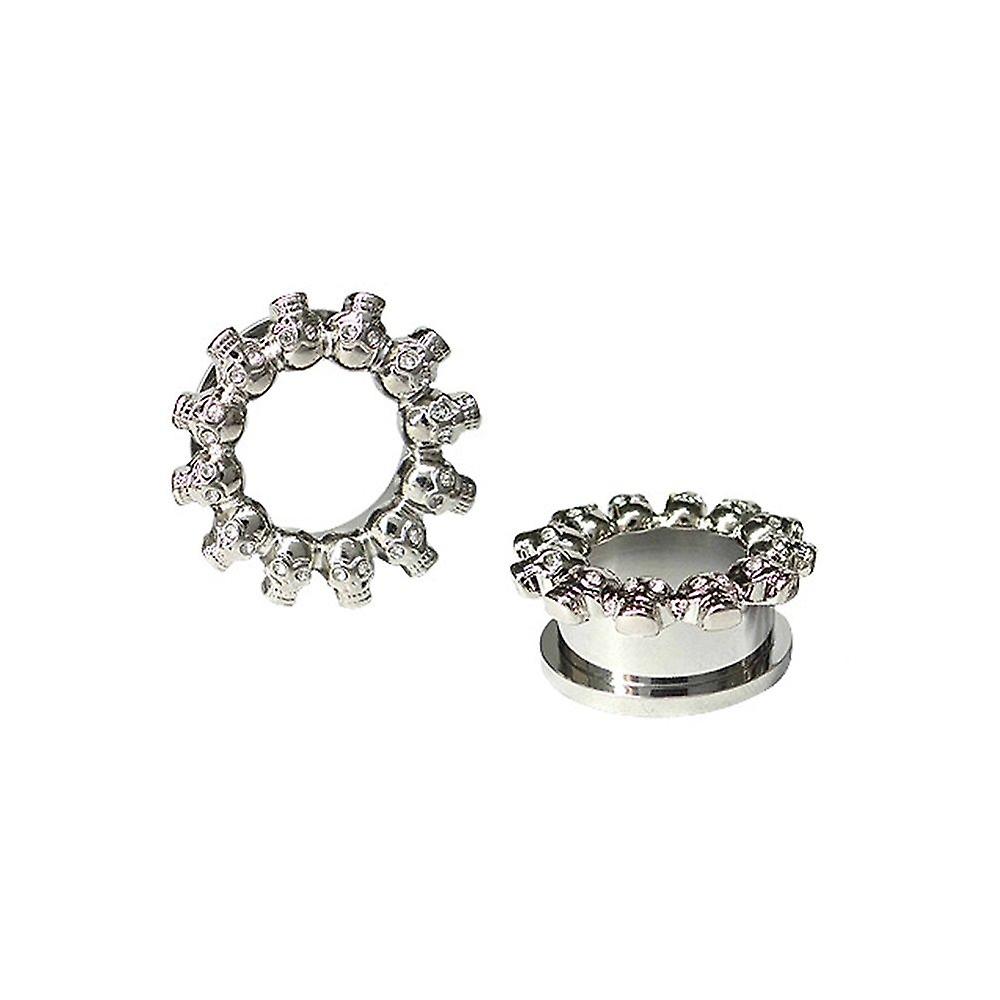 Pair of ear plugs screw fit skull heads with cz gem eyes