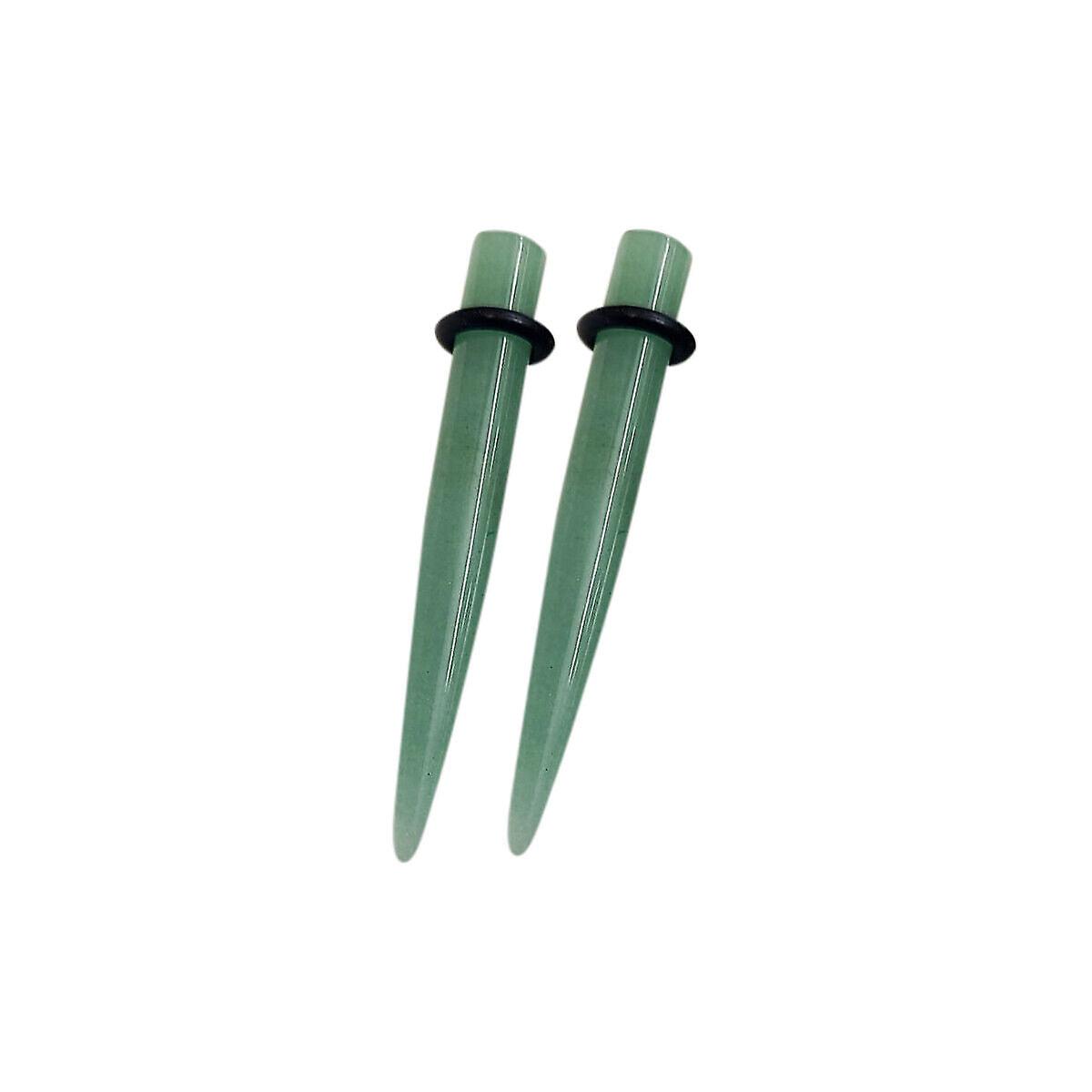 Pair of green jade semi precious solid stone natural o-ring straight ear tapers