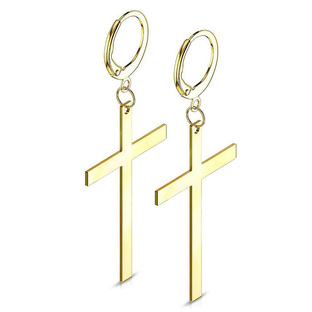 Pair of hoop earrings with cross dangle stainless steel 20g