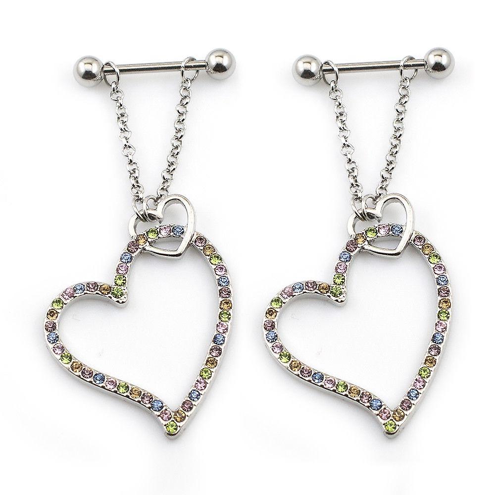 Pair of nipple barbel with heart dangle 14g