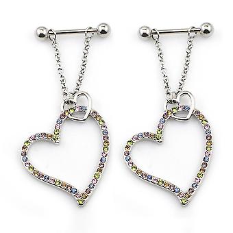 Pair of nipple barbel with heart dangle 14g