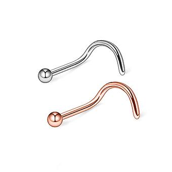 Pair of nose screw with ball end 20g. rose gold and surgical steel