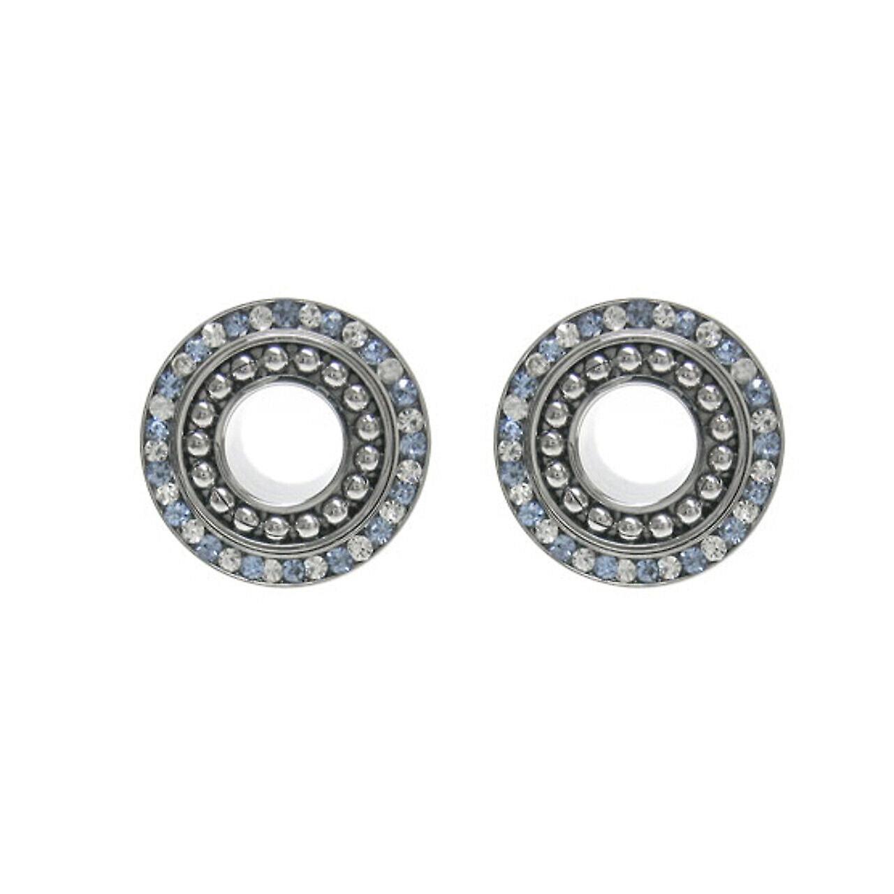 Pair of surgical steel screw fit ear plug with blue & clear cz gems