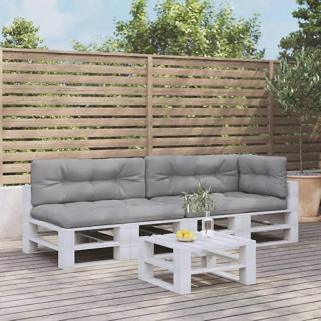 Mit diesen bequemen Palettenkissen verleihst du deinem Outdoor-Wohnbereich im Handumdrehen einen neuen Look Langlebiges Material: Polyester ist ein synthetisches Material, das für seine hohe UV-Beständigkeit und seine Reißfestigkeit bekannt ist. Polyester ist wasserfest, was es zur perfekten Wahl für feuchte oder regnerische Bedingungen macht. Es lässt sich auch einfach reinigen.Weiche Füllung: Das Outdoor-Kissen ist mit Hohlfasern gefüllt, die für einen besonders weichen und optimalen Sitzkomfort sorgen. Das Kissen nimmt nach jedem Gebrauch seine ursprüngliche Form wieder an.Vielfältig einsetzbar: Das Kissen eignet sich für den Einsatz im Freien, z. B. für Gartenmöbel, aber auch in Innenräumen als Sitzkissen für Hocker und Sofa. Außerdem ist es eine schöne Dekoration, die deinem Zuhause einen frischen Look verleiht. Gut zu wissen:Das Produkt wird unter Vakuum verpackt und braucht daher einige Zeit, um sich auszudehnen und seine ursprüngliche Form wieder anzunehmen. Farbe: GrauMaterial: Stoff (100% Polyester)Füllmaterial: HohlfaserWasserabweisendLieferung umfasst:2 x Sitzkissen: 120 x 80 x 12 cm (L x B x T)1 x Rückenkissen: 70 x 40 x 12 cm (L x B x T)2 x Rückenkissen: 120 x 40 x 12 cm (L x B x T)