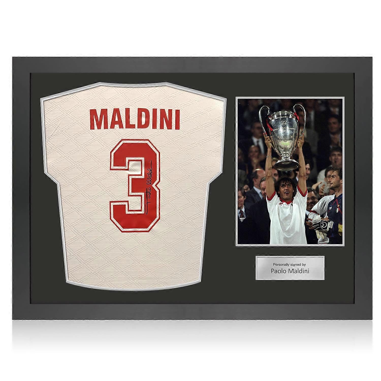 Paolo Maldini Signed AC Milan 1994 European Cup Final Football Shirt. Icon Frame