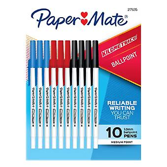 Papermate Kilometrico Medium Ballpoint Pens Smooth Easy Grip Barrel Pack of 10