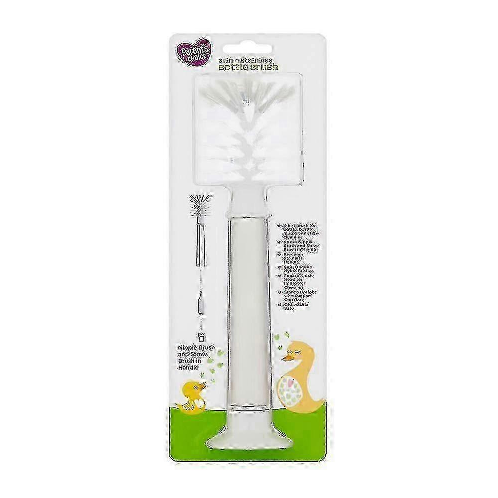 The bottle nipple brush and straw brush conveniently store inside the handle of the bottle brush when not in use. All the 3 brushes have soft, durable nylon bristles to sweep away residue easily. Square brush head for hard-to-reach areas. Stores upright with suction cup base to keep countertops neat and dry. Stop wrestling with hard-to-clean bottles, straws, and nipples with the Parent's Choice 3-in-1 Stainless Bottle Brush. This versatile bottle brush is good for both standard and angled bottles and conveniently stores 2 extra brushes inside the handle?a nipple brush and a straw brush to clean inside those hard-to-reach places where germs can hide. All three brushes have soft, durable nylon bristles to sweep away residue easily. The bottle brush has a square brush head for improved cleaning of hard-to-reach areas. The bottle brush features a premium, stainless handle designed to easily store the included straw and bottle nipple brushes. It is dishwasher safe and has a suction cup base so that it can be stored upright. Washing bottles and bottle parts is a breeze with Parent's Choice 3-in-1 Stainless Bottle Brush. Your baby might also like. . .