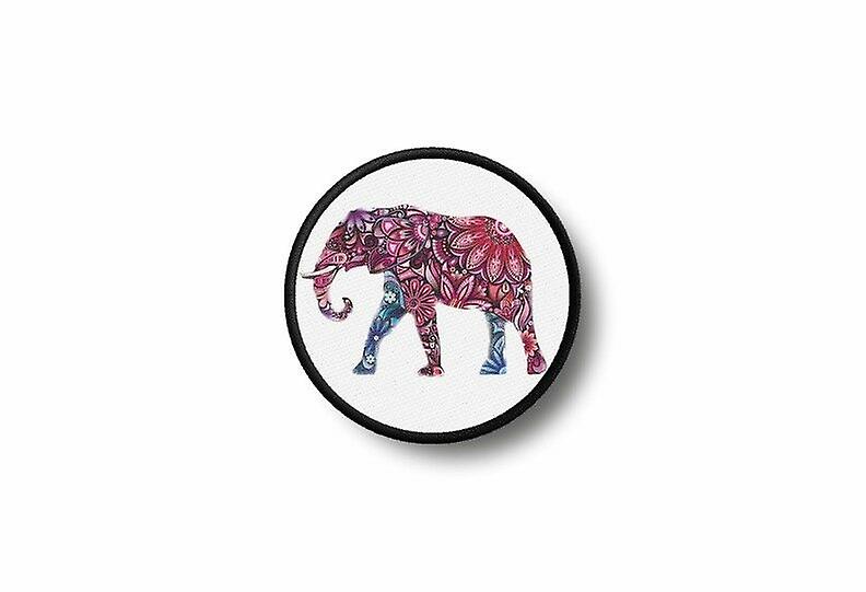 Patch Biker Insigne Ecusson Brode Imprime Thermocollant Elephant Rose Vintage