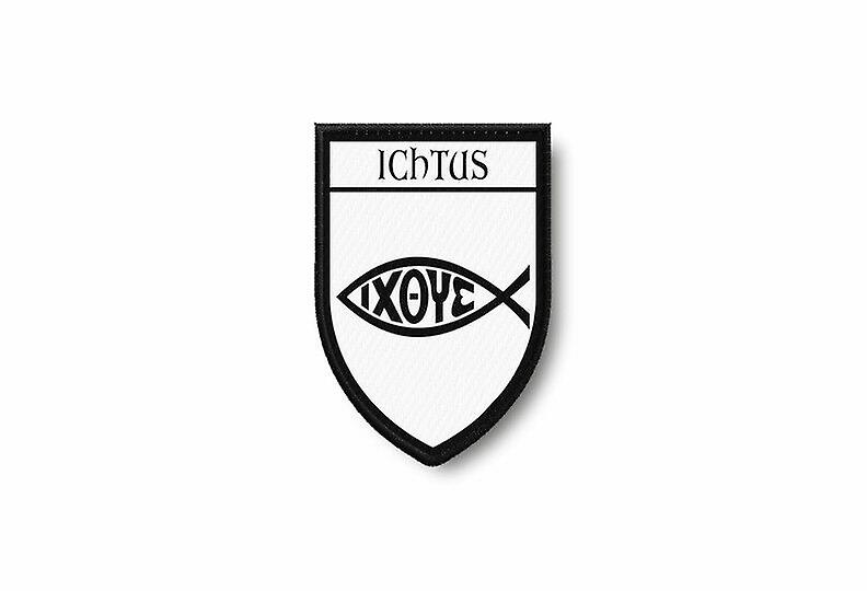 Patch Ecusson Termocollant Bord Brode Drapeau Imprime Ioxe Poisson Jesus Ichthys