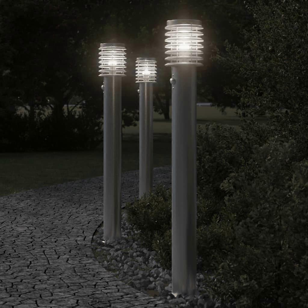 Wegeleuchten mit Bewegungsmelder 3 Stk. Silbern 110cm Edelstahl
